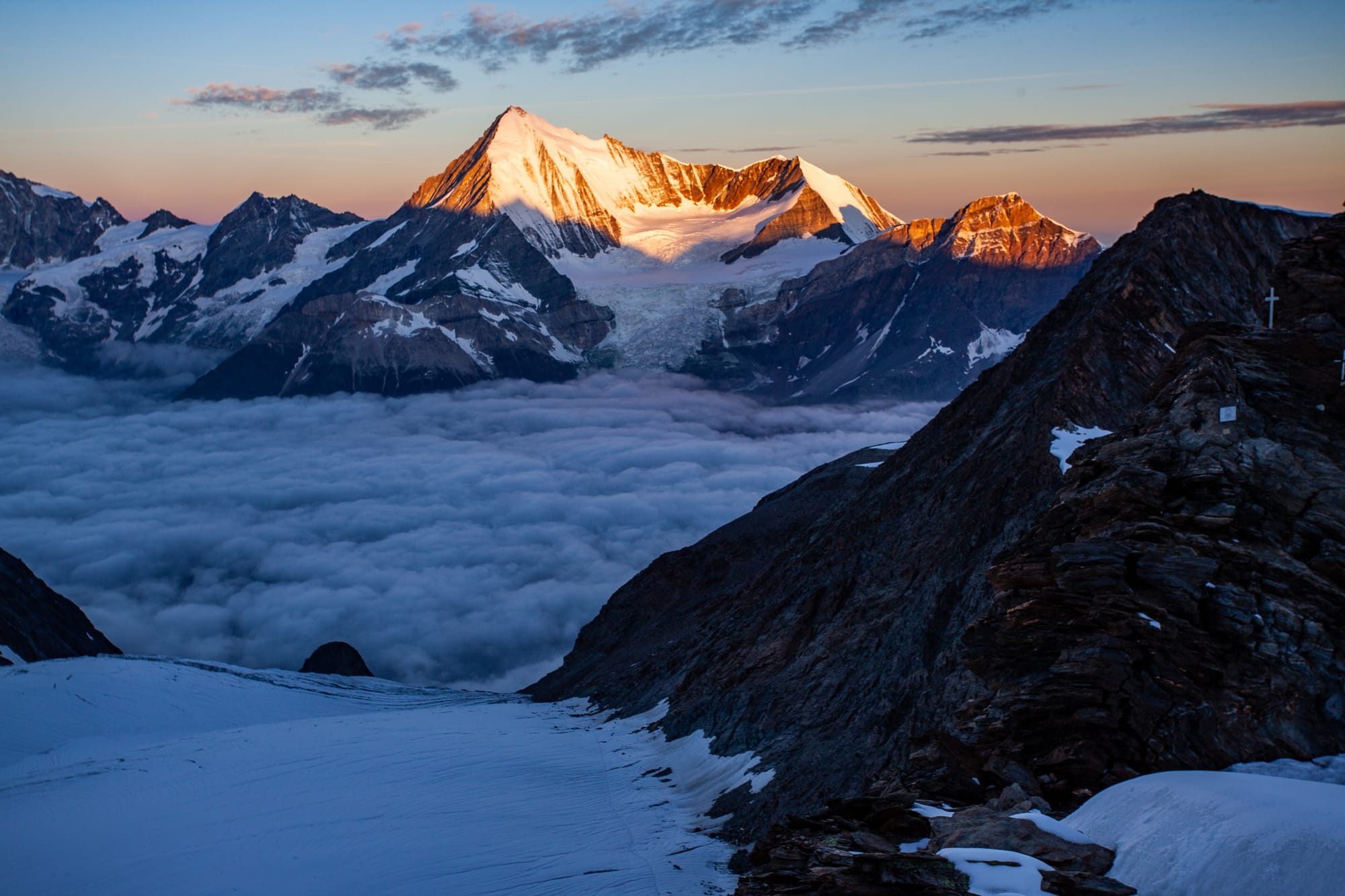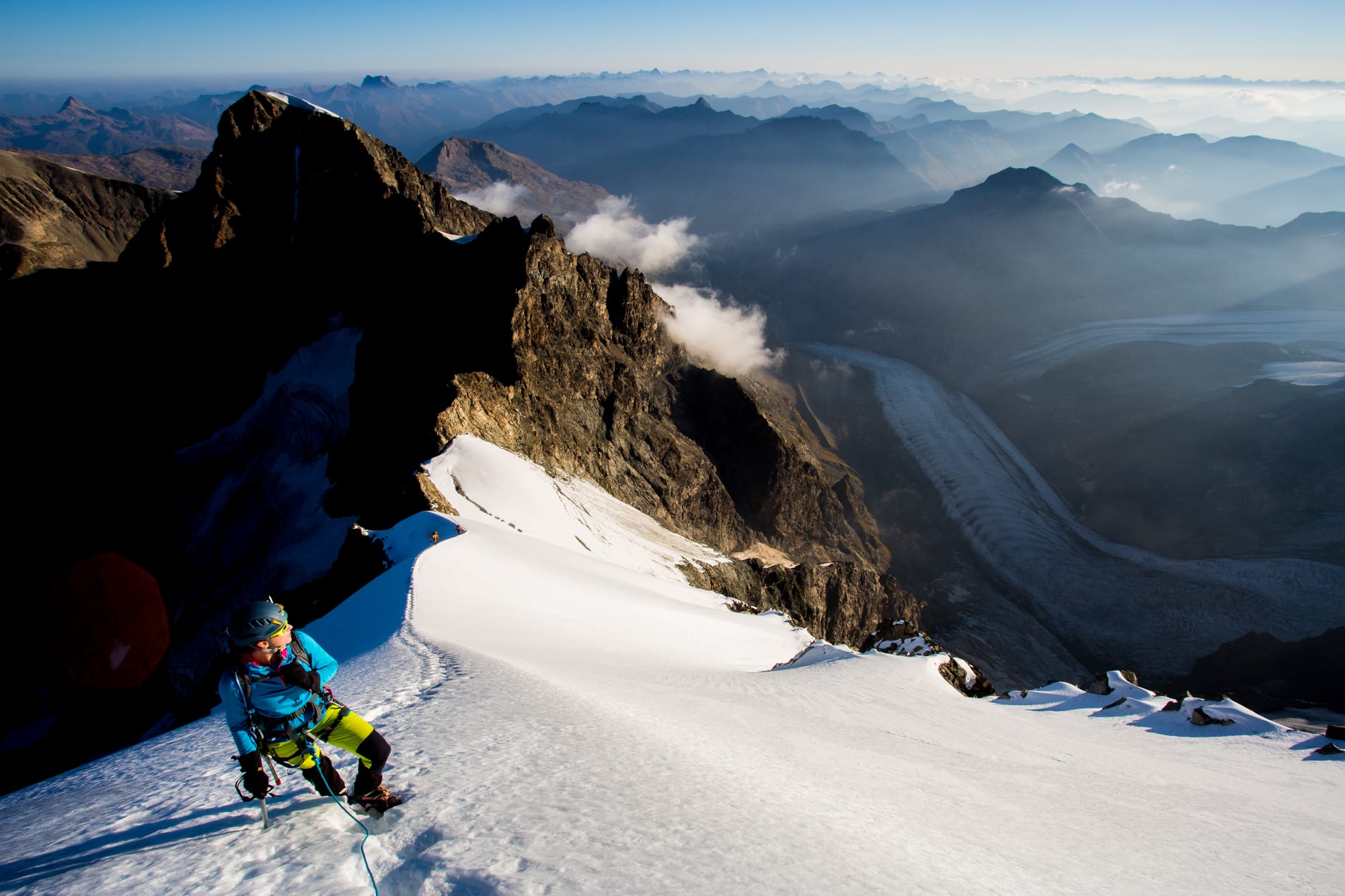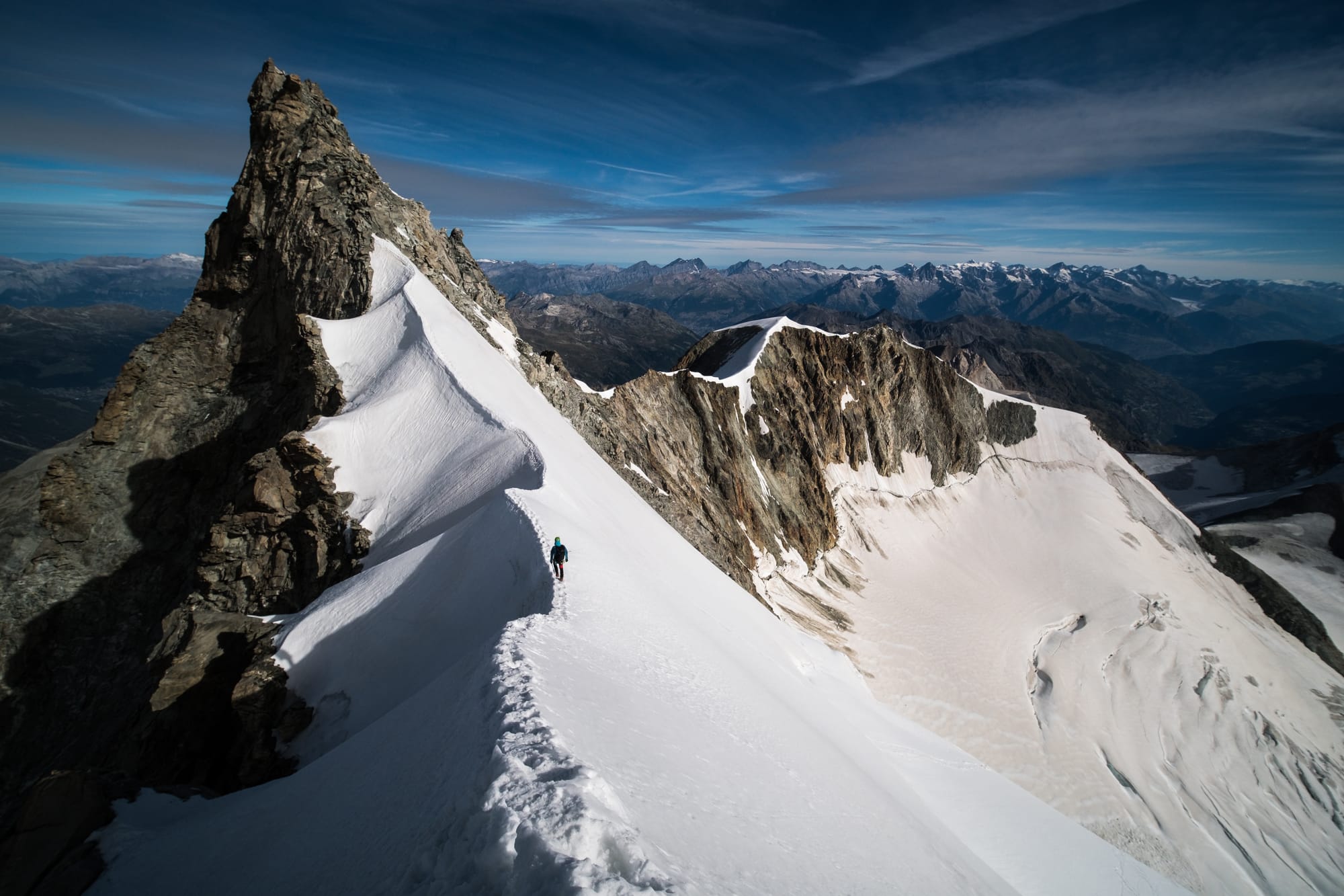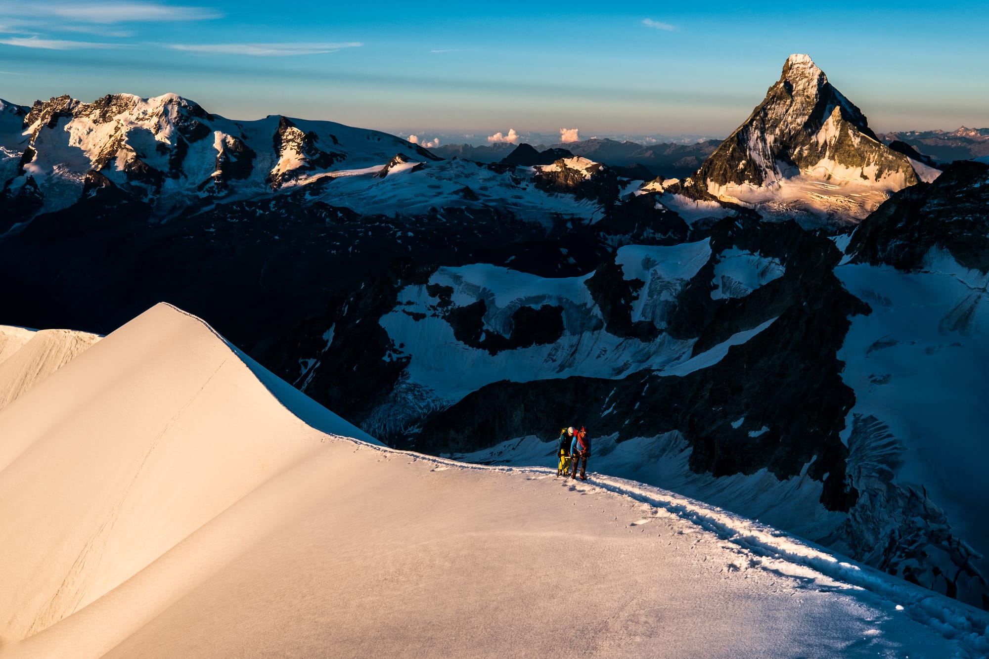 Nejvíc vršků jedním šmahem se sbírá nad Zermattem. My jsme si v rámci tzv. Spaghetti Tour na hranici Švýcarska a Itálie v září 2016 s mou ženou Kristinou vyzobli 12 čtyřtisícovek, ale to rozhodně není zdejší maximum. Pokud poctivě prokřižujete celý masiv Monte Rosy, můžete jich napočítat 18. A pokud to vezmete v tempu jako Švýcar Andy Steindl, můžete to stihnout za méně než 8 hodin. Ale pro běžné smrtelníky je to spíš túra na 3–5 dnů.