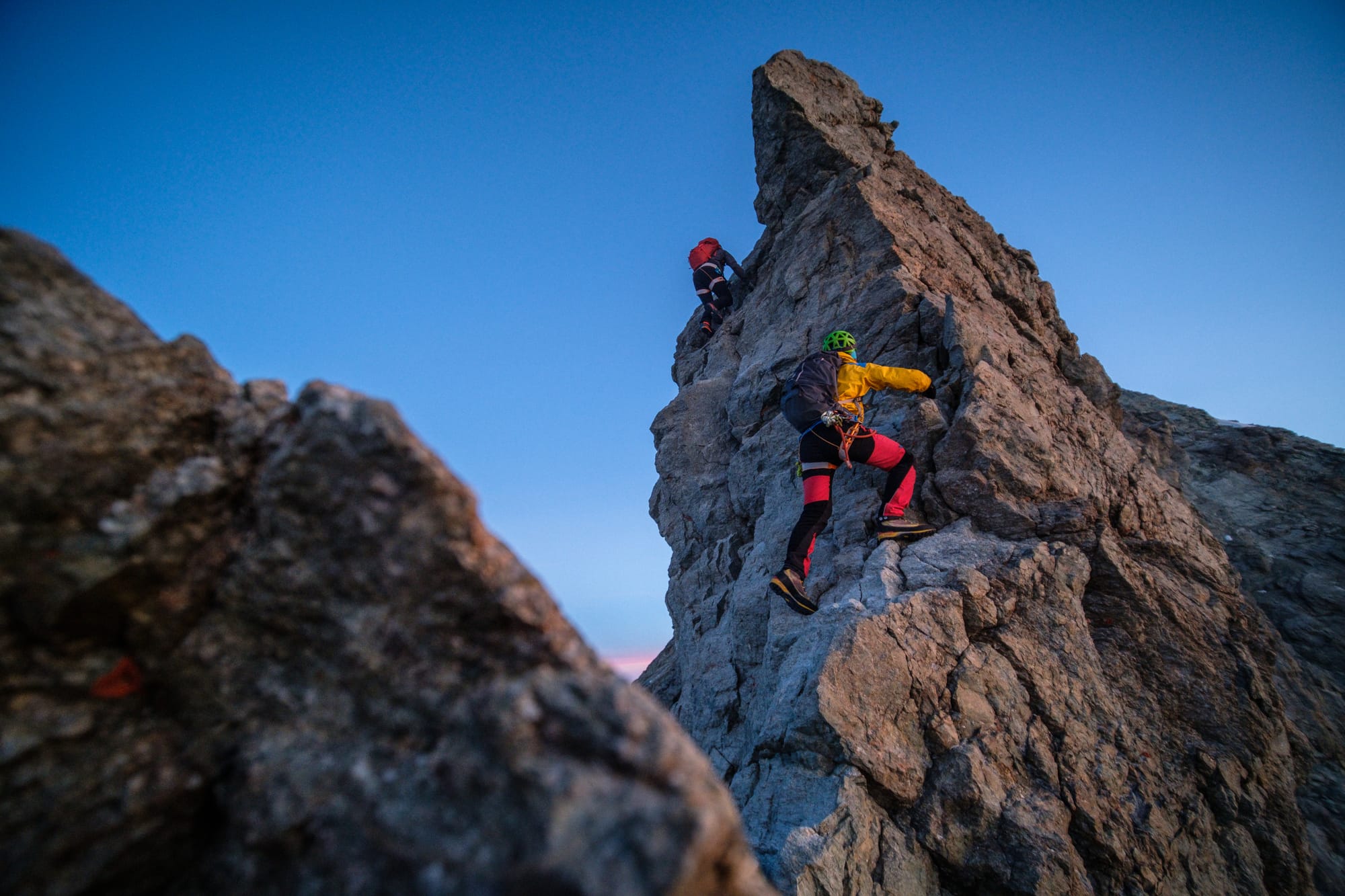 - Obergabelhorn & Zinalrothorn: ideální je podle mě kombinace hřebenu Arben ze stejnojmenného bivaku, poté nocleh na malebné Rothornhütte a následující den výstup Zinalrothorn. Na ten vedou i další parádní linky z údolí Zinal.