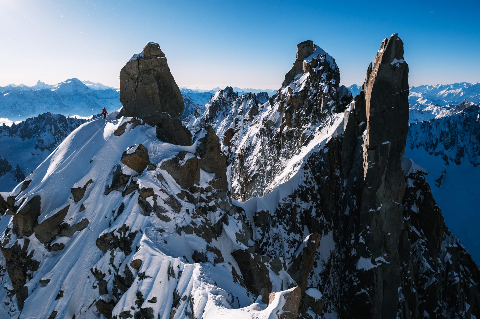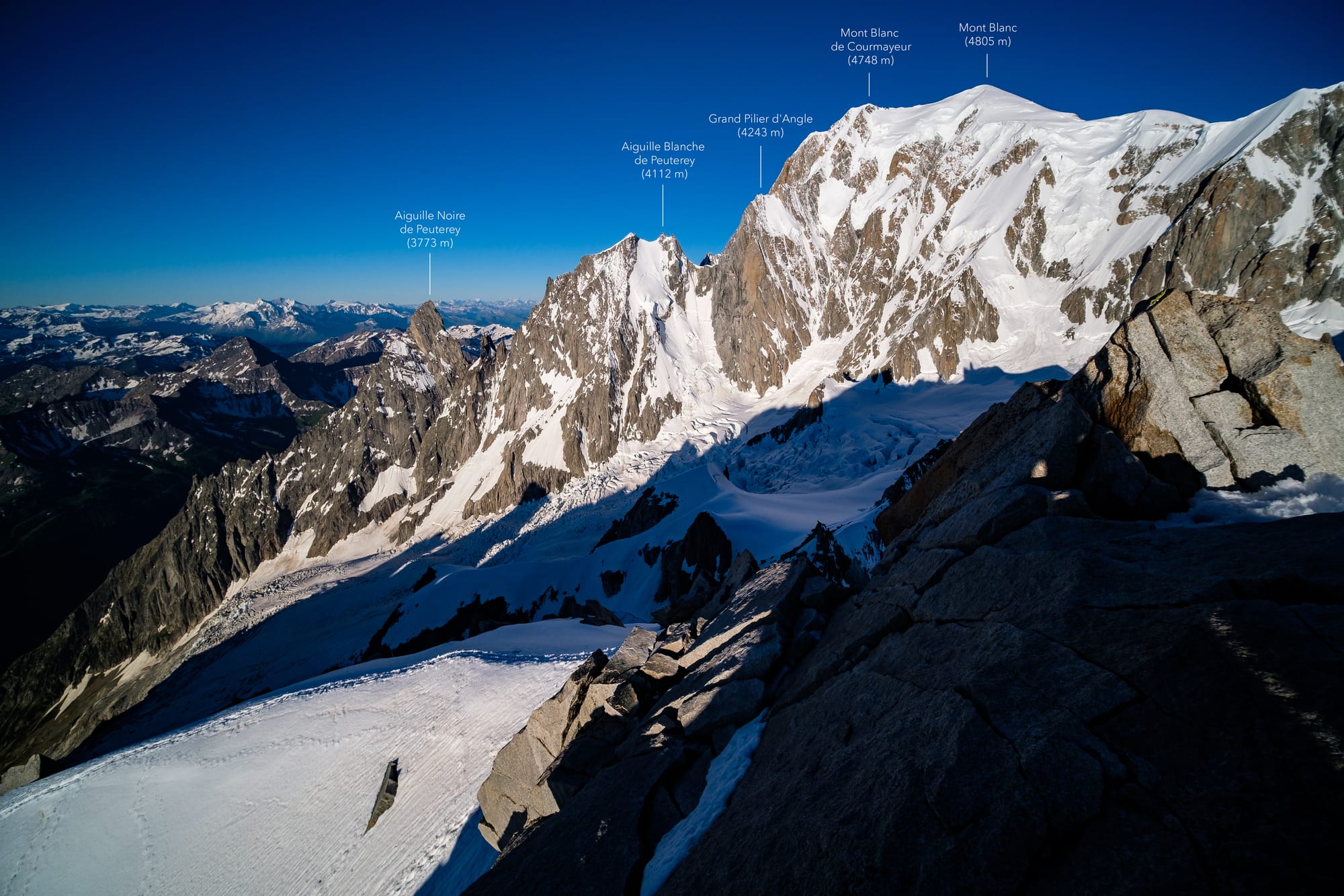 1. a 2. Hřeben Aiguille du Jardin – Grande Rocheuse | 3. Monte Rosa, Punta Giordani