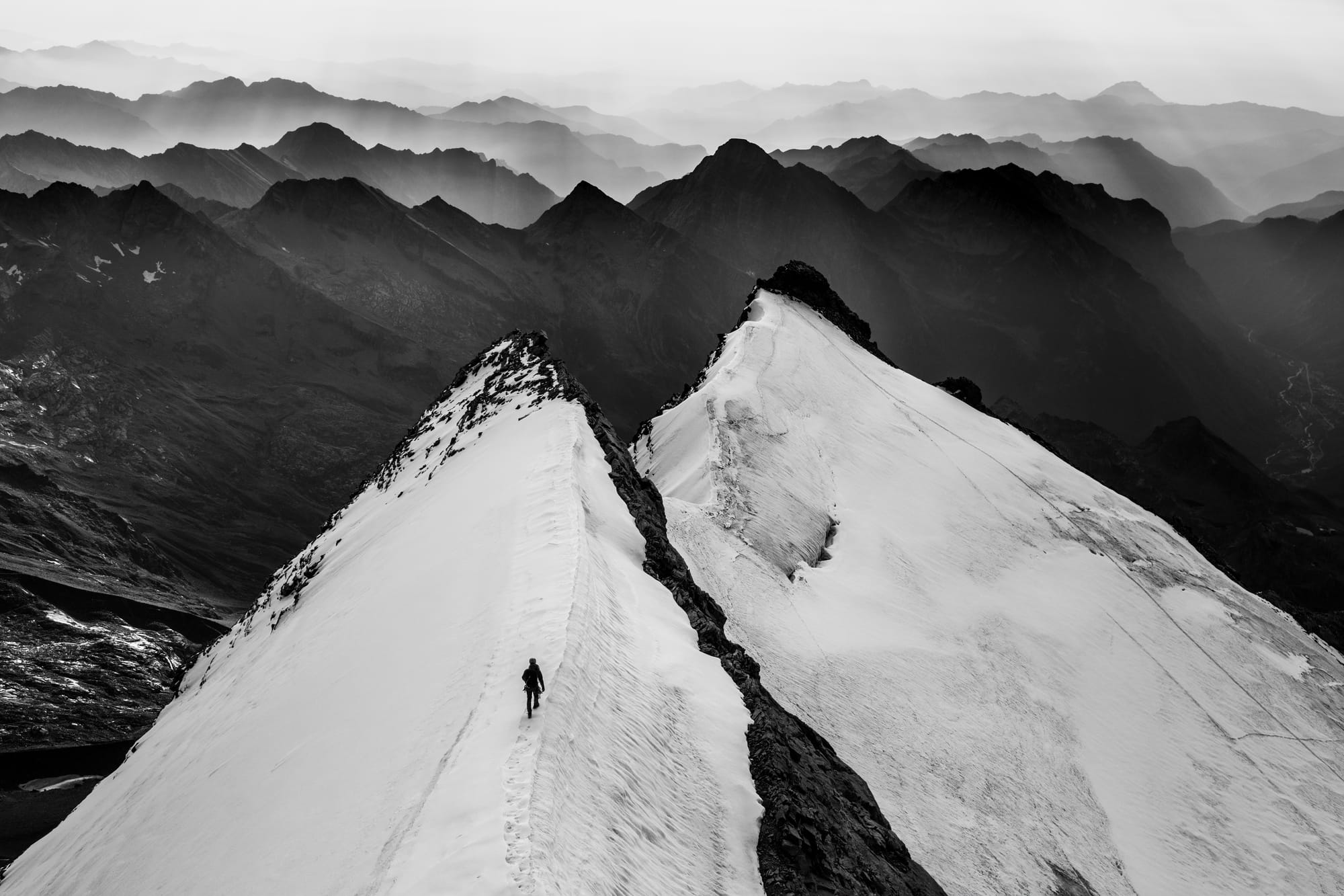 Nechci nijak propagovat pohyb sólo v ledovcovém terénu a tak jen čistě pro záznam uvedu, že jsem jel sám stopem poprvé na Mont Blanc a stejným dopravním prostředkem jsem vyrazil v roce 2007 na Jungfrau a Mnicha do Bernských Alp. Sólo jsem taky lezl Liongratem na Matterhorn.
