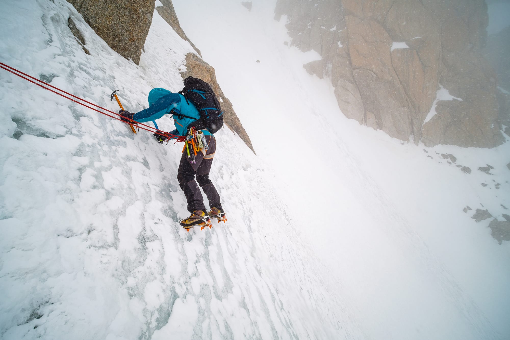Tady nemusím dlouze přemýšlet. Nejtěžší horolezecký výstup, který jsem kdy podnikl, byl hřeben Peuterey, který jsme v červenci 2020 přelezli s Lukym ve verzi Integral začínající v údolí Val Veny a končící na vrcholu Mont Blancu. Celkem 50 skalních délek, 400 metrů slanění, hledání bivaku pozdě do půlnoci,… A druhý den nanovo, jen skálu vystřídal sníh a počasí se začalo kazit. Tahle komplexní túra nás prověřila víc než poctivě. Z dalších výstupů aspoň telegraficky vzpomenu na rovněž předlouhý a místy objektivně nebezpečný hřeben Brouillard s Martinem a na mrazivou severku Nollen na Mnicha v Bernských Alpách, kdy se nám nečekaně zkazilo počasí a prsty nám omrzly tak, že jsme cítili brnění ještě čtvrt roku.