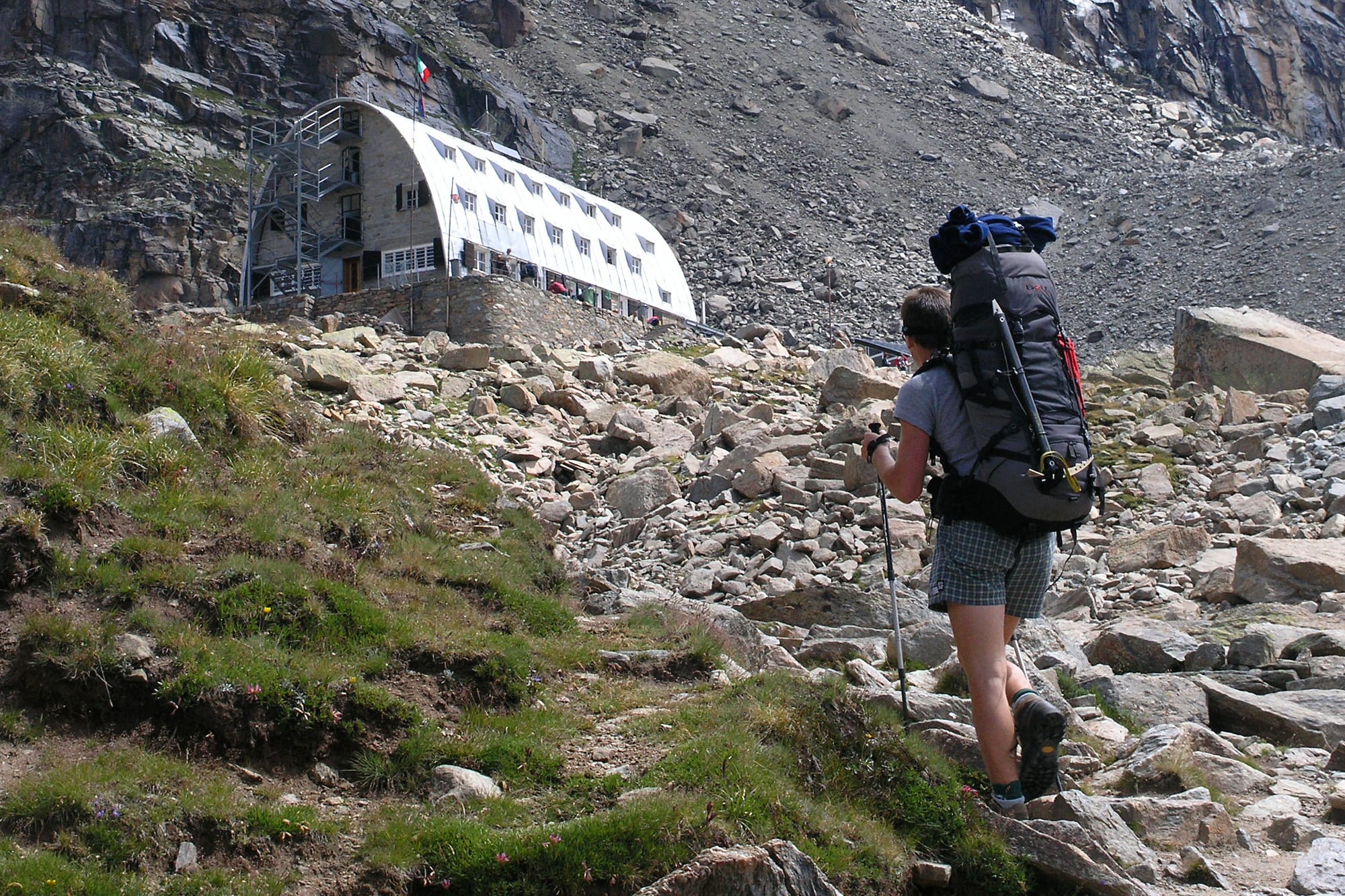 Gran Paradiso v červenci 2005. Půjčil jsem si od bráchy auto a s kamarádem z gymplu, Michalem, jsme vyrazili přes půl Evropy. Vyzbrojeni jsme byli papírovými mapami a teoretickými znalostmi o pohybu po ledovci a překvapivě jsme i z dnešního pohledu neudělali mnoho chyb. Jen ty almary, které jsme táhli na zádech, odpovídaly spíš měsíční expedici, než dvoudennímu výstupu.