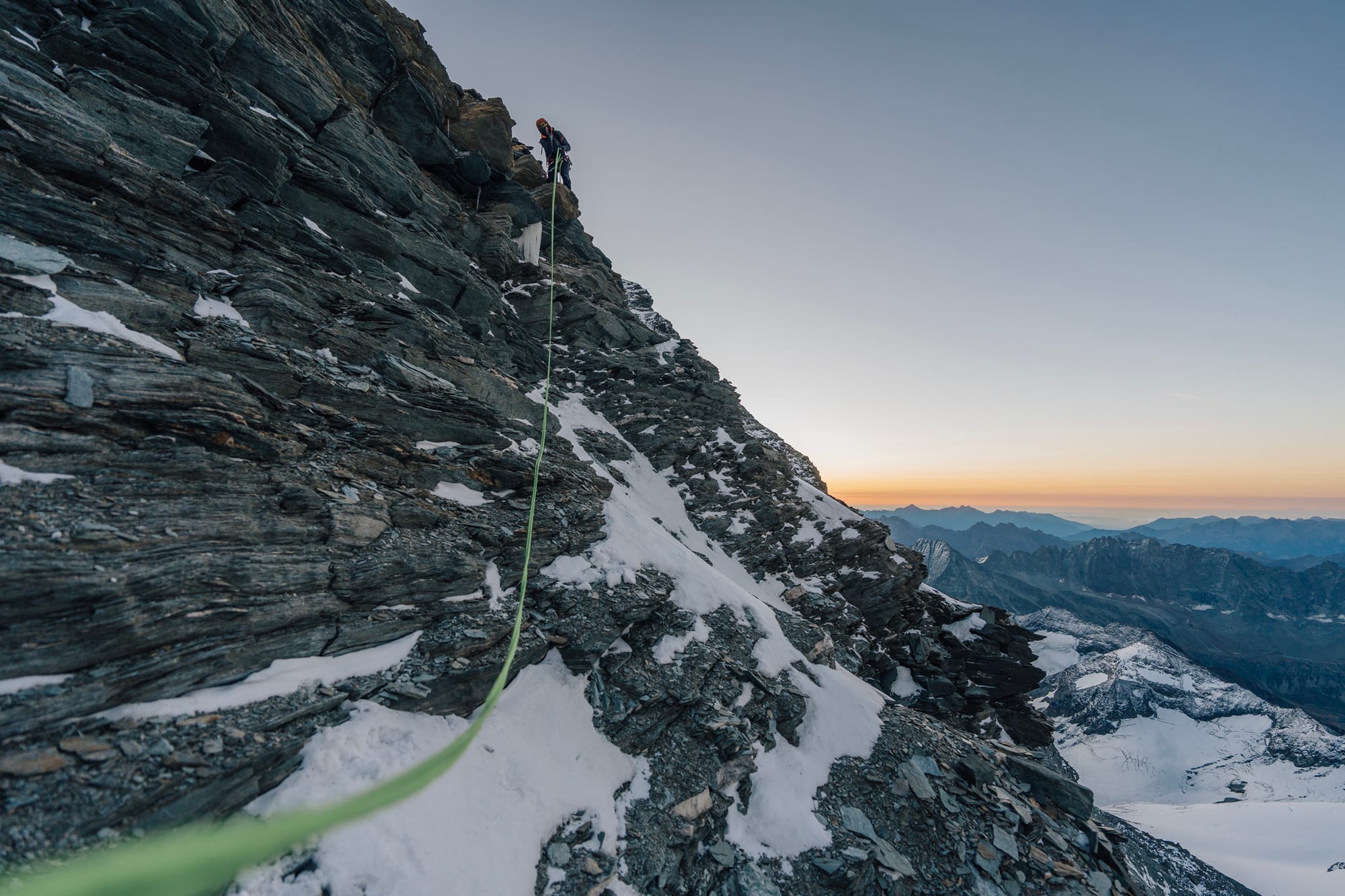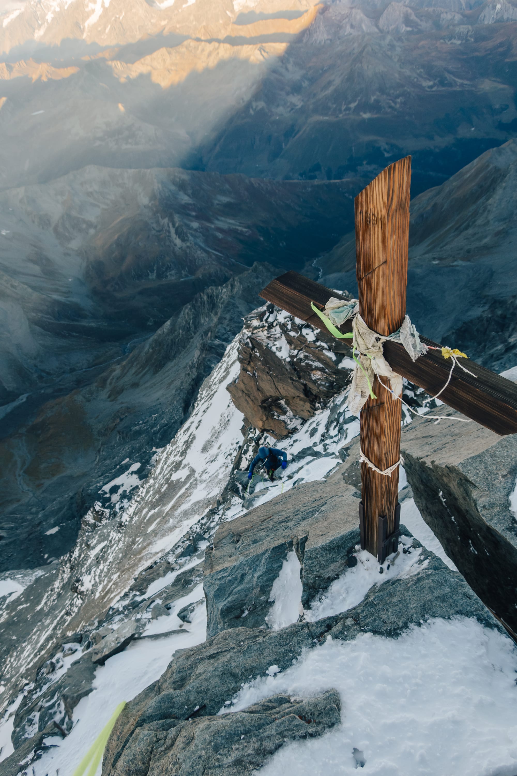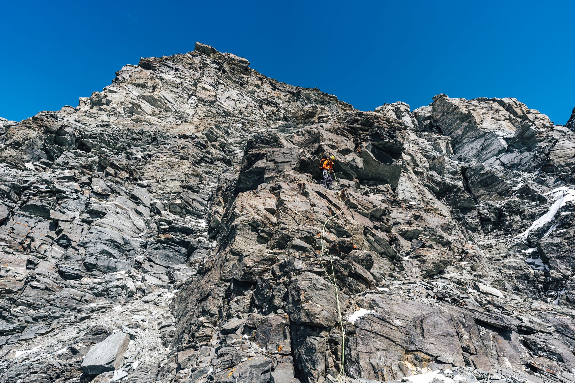 Výstupová trasa k vrcholkům Grand Combinu vypadá na papíře jako naprosto ideální alpská túra, která kombinuje skalní lezení a pěknou dávku pohybu v ledovcovém terénu. To nejzajímavější z celé výstupové trasy je hřeben Meitin - skoro 600 výškových metrů vysoký skalní hřeben, který v lecjakém průvodci vypadá jako větší bráška vyhlášeného a populárního Studelgratu na Grossglockner. S jedním malým rozdílem - kvalita skály.