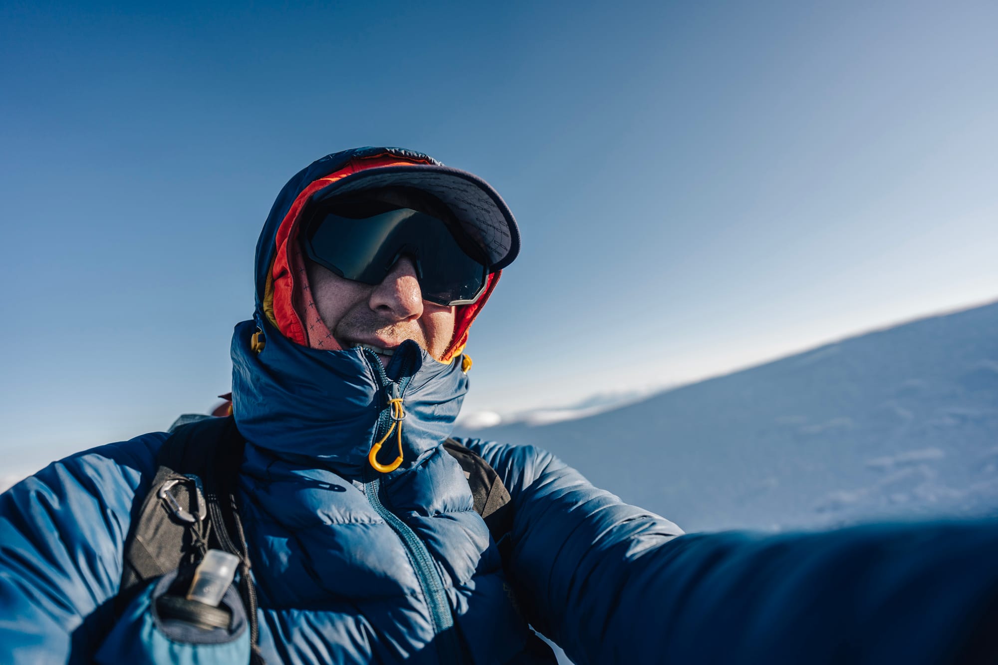 Šíleně tu fouká. V podstatě celou dobu, co jsme se vyhoupli na ledovec, jdu v péřovce Patizon ReLight Pro - a děkuju bohu, že má tak dobrou kapuci na přilbu, že se do ní celej schovám a límec mi ještě elegantně zakryje obličej.