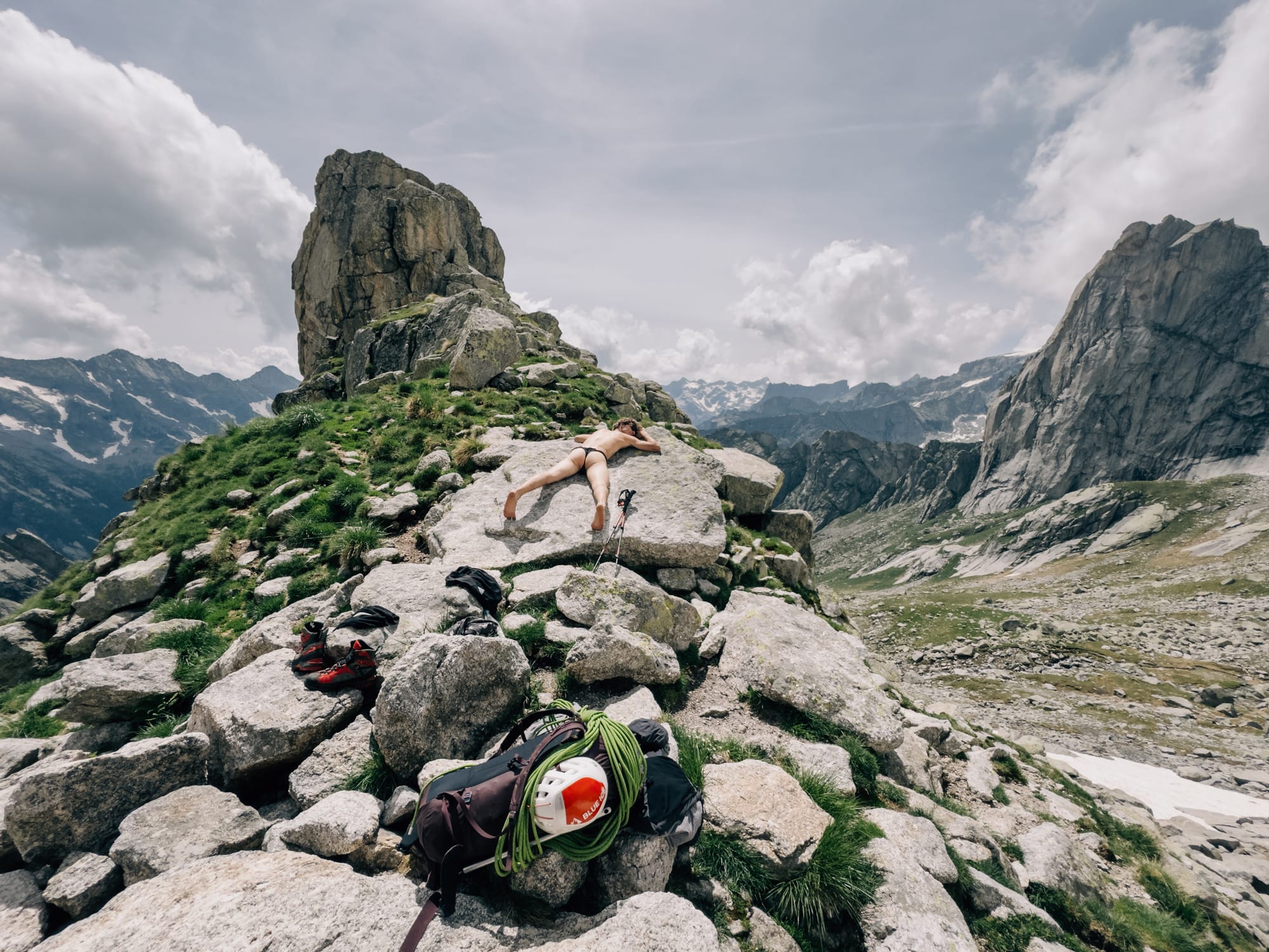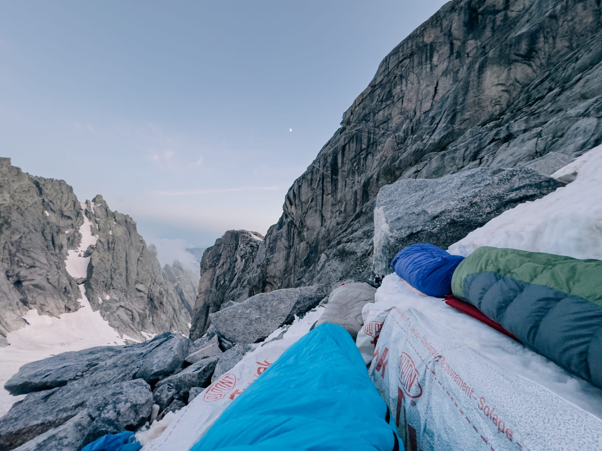 A teď ten pátý pokus. O osm let, mnoho alpských lajn, cest, zážitků a zkušeností později, dorazili jsme zpět na místo činu, do kavárny v San Martinu ve Val di Mello. Sestava se znovu proměnila a k Lukymu a mně se letos přidal Mišo Pírek a Ondra Málek. Je polovina července a cítíme, že letos by to opravdu mohlo klapnout. Máme udatný, ověřený tým a předpověď počasí vypadá na alespoň dvoudenní okno. První den jdeme krásných šest hodin pod stěnu, kde bivakujeme.