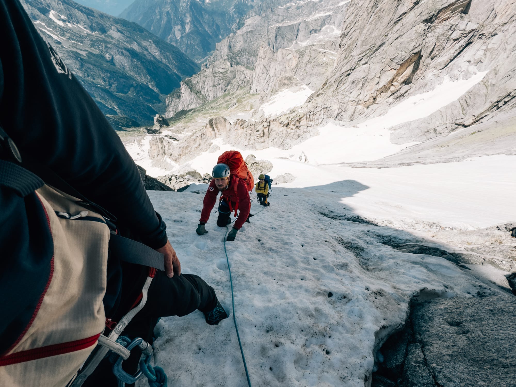 Na třetí pokus už jsem byl přítomen i já. Bylo to v roce 2015, mně bylo sladkých devatenáct a Lukymu šťavnatých dvaadvacet. S ambicemi jsme nastoupili a jeli jsme tam jen ve dvou, jen to vylézt (ze švýcarské strany) a navrtat kotvení. Já poprvé používal mačky a cepín, většinu vybavení mi půjčili kamarádi, a byl jsem poprvé na ledovci. Luky, ten zkušenější z nás dvou, už ledovec jednou viděl, a kupodivu... Jsme neuspěli. Plni odvahy, mladistvé energie a nadšení pro věc, a nás, ku našemu překvapení, zastavil ledovec a jeho trhliny. Kdo to mohl tušit, že na ledovci uprostřed léta budou trhliny?! Ani naše orientace nebyla nejlepší, a tak výprava ztroskotala dřív, než samotné lezení mohlo začít. Masiv jsme alespoň objeli do Itálie a zalezli jsme si ve Val di Mello. Nabírali jsme další cenné zkušenosti a slintali z kavárny v údolí nad krásou Kleopatry v dáli.