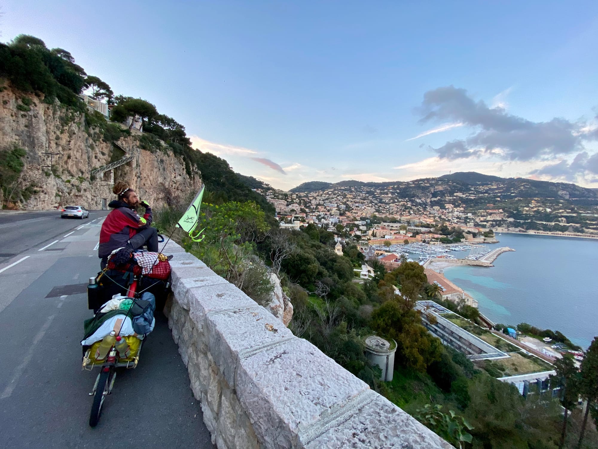 Úterý 3. března: Úzkou silnicí jsme pokračovali do Monaka. A pak poctivě nahoru na hlavní silnici směrem do posledního francouzského města Menton, kde na nás čekal nový kamarád – náš hostitel Guilam. Učitel flétny na místní univerzitě a nadšený cestovatel. Ještě nebyl doma, když jsme dorazili, ale napsal nám, že dveře jsou odemčeny a že se mám chovat jako doma. A takovýchto krásných lidí potkáváme na cestách spousty. Pohostinnost z lidských srdcí ještě nevymizela.