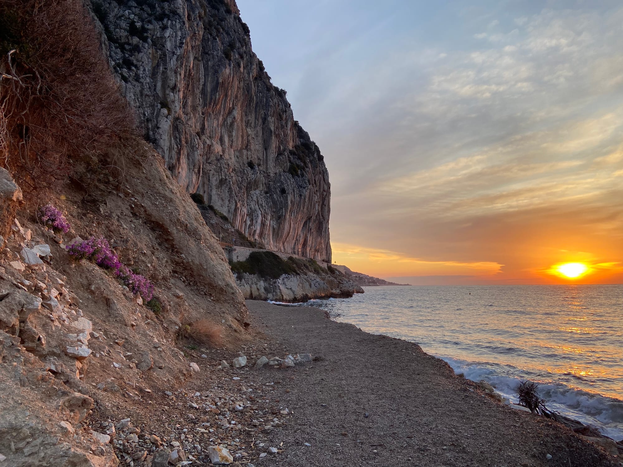 Středa 4. března: Ve 12:00 jsme odjeli z Mentonu. Ke hranicím s Itálií to bylo jen 4 km po promenádní cyklostezce – ale tunel za hranicí byl zavřený. Takže zpátky do Francie a dál velmi strmou a frekventovanou silnice přes pobřežní útes. Dáváme si první italské espresso u usměvavé Kubánky. V San Remu Kačenka nafotila staré baráky a pak jsme pokračovali po překrásné a široké cyklodálnici – tak hezkou jsme ještě nejeli. Chystáme se ke spánku, v nohách máme 37 km a pod námi šumí moře...