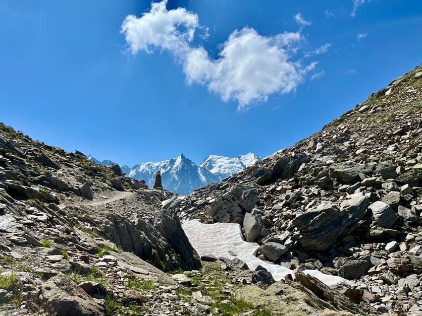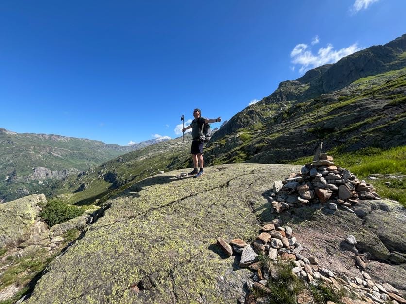 Vedeli sme, že sa blížime k Mont Blancu, kde sa na dva dni naša trasa spája so známym trailom Tour de Mont Blanc. Očakával som, že tam bude veľa ľudí, ale realita ma vážne zaskočila. Hoci je to nesporne krásna trasa, bol to presný opak toho, na čo som sa tešil. Po dvoch dňoch sme však konečne opustili značku TMB. A hneď za prvou odbočkou nás čakalo niečo úžasné. Hrebeňovka Crête des Gittes, približne dva kilometre priamo po hrebeni. Po ďalšom údolí sme začali stúpať do sedla Col du Grand Fond. Boli sme necelých desať kilometrov od TMB, a mali sme celé údolie len sami pre seba. Až na vrchole sme stretli jedného bežca.